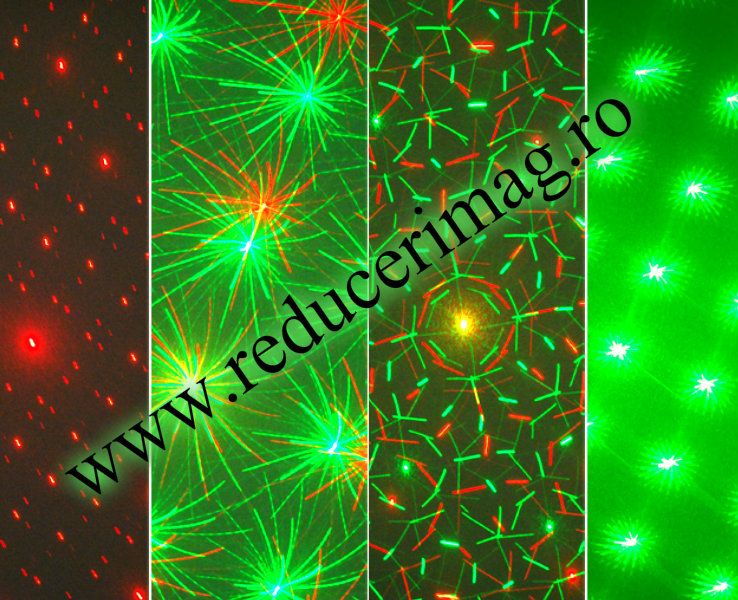 Sistem Laser profesional pentru discoteci, baruri, petreceri etc. Efecte tip artificii,raze,puncte. Doua diode laser: rosu si verde. Raspuns la muzica. Efecte spectaculoase. Usor de folosit.