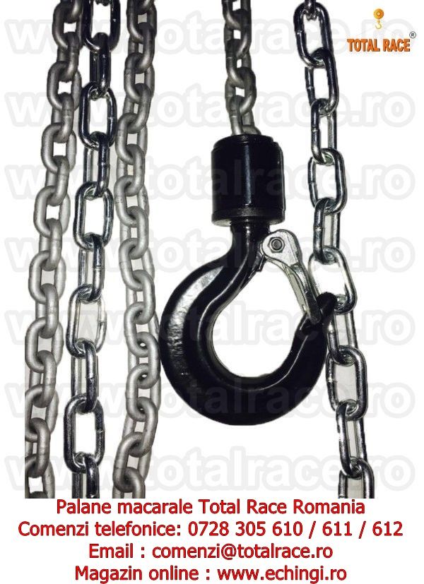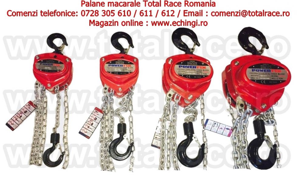 - Total Race livreaza din stoc Bucuresti palane manuale cu lant pentru instalare echipamente , scripete cu lant pentru incarcare sau descarcare de marfuri , macarale cu lant grad 80 , palan cu lant de sarcina acoperit cu strat de protectie anticoroziv , dispozitive de ridicare portabile , macara cu lant pentru manevrare sarcini mari si utilizari intense, in conditii de siguranta deplina , palane productie Suedia. Pentru preturi , date tehnice si stoc accesati magazin online : www.echingi.ro