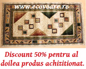 Intra pe www.ecovoare.ro si vei gasi cele mai colorate modele de covoare pentru a da culoare casei tale. Da-ne un LIKE pe pagina de Facebook ( http://www.facebook.com/ecovoarepage ) si beneficiezi de 25% pentru prima ta comanda in Mgazinul Online "ecovoare.ro", deasemnea poti beneficia si de oferta noastra: " 50% DISCOUNT pentru al doilea produs achizitionat". Te asteptam pe www.ecovoare.ro pentru a-ti oferii o gama larga de covoare la cele mai bune preturi.