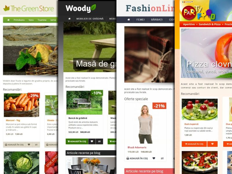 Toate paginile site-ului dvs. vor fi optimizate pentru afisarea pe diferite dispozitive (mobil, tableta, laptop, desktop), prin reorganizarea automata a continutului (responsive design). Pachetul Standard 120 EURO Pretul include: realizarea, instalarea si configurarea site-ului, cu design standard, pe baza modelului ales de client; functii de cautare, comparare si selectare produse favorite; instrumente de marketing; blog integrat; panou de administrare; asistenta si mentenanta.