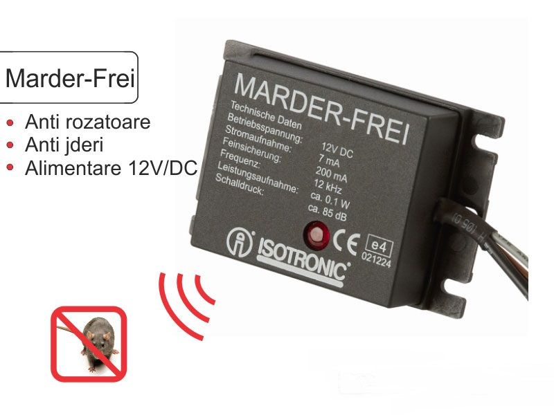 Acest aparat anti jder este unul ce produce un semnal acustic cu frecventa de 12kHz la intervale de 15 secunde destul de suparator pentru daunatori.Puteti comanda la numarul de telefon :0758101503 sau http://www.anticartite.ro/produse/anti-soareci/aparate-auto/4/11