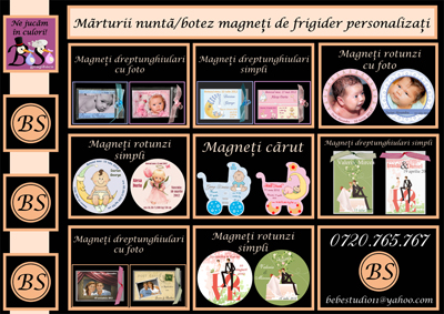 Executam marturii nunta botez magneti de frigider personalizati.