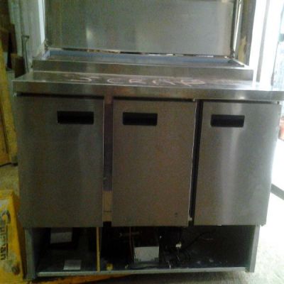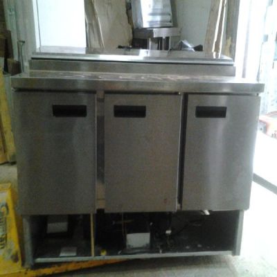 Masa frigorifica cu 3 usi si saladette, inox 4 GN 1/4,Second Hand, import Anglia, stare buna de functionare, dimensiuni 1367/00/850,