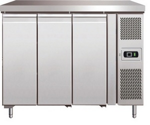 Masa frigorifica inox cu 3 usi, 2 gratare/usa,motor lateral, termostat electronic cu dezghetare automata inclus in pret,greutate 127kg, capacitate 458ltr, temp +2/+5°C, 1850x700x860, 1.040 €