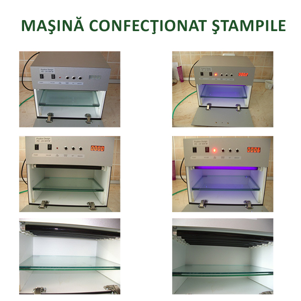- Vand masina de confectionat stampile pe baza de polimer. Masina este NOUA,a fost folosita o singura data. Cu aceasta masina de pot produce cca 30 de stampile in 10 minute, masina dispune de un rand de expunere UV, tasta de operare digitala,computer de numarare cu retinere automata a timpului in memorie,pompa de aer pentru indepartarea bulelor din polimer,imbatranire polimer,raft expunere filme, raft expunere polimer. Carcasa din aluminiu eloxat. Pret 1250 lei, fara factura, fara garantie.