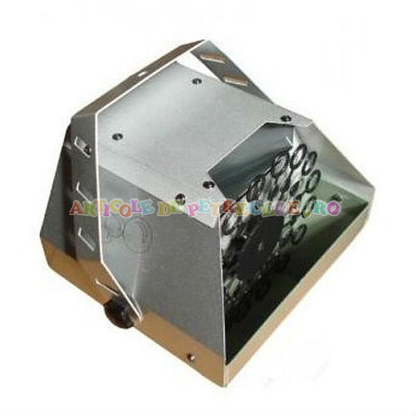 - Masina electrica de facut baloane de sapun cu telecomanda, este ideala pentru petreceri private, putand fi folosita in discoteca, baruri, terase etc. creind o atmosfera spectaculoasa si atragatoare. Deasemenea se poate folosi la petreceri sau pentru amuzamentul copiilor dumneavoastra. Capacitate: 1200 de baloane/min; Distanta de aruncare: 5-10 m (in functie de inaltimea pozitiei si de curentii de aer din incapere); Durata de viata a baloanelor: 15-50 secunde; Functioneaza la reteaua de 220V; Consum lichid baloane de sapun: circa 100 - 150 ml pe ora. Are suport reglabil pentru fixarea la inaltime. Greutate 2.2 KG.