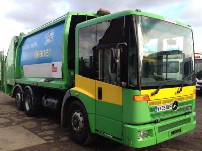 Mercedes autogunoiera compactoare pe 3 axe , 26 tone , sistem compactare 20-22 mc, lift pubele compatibil 1100 litri , stare excelenta, 6 bucati in stoc , sub 10 ani vechime , euro 3 si euro 4.