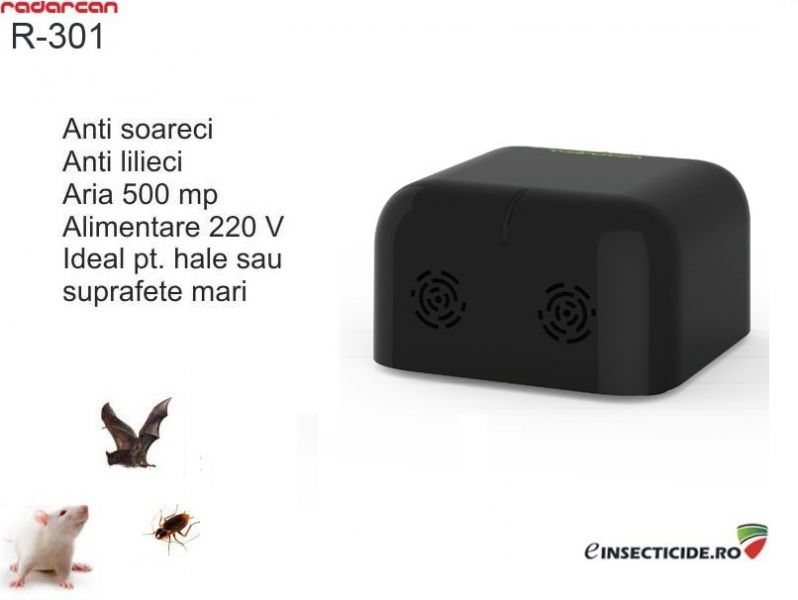 - Aparatul R301 este un aparat creat atat pentru uzul interior dar si exterior, este prevazut cu doua boxe ce emit ultrasunete ce deranjeaza sistemul nervos al daunatorilor. Comenzi la numarul de telefon:0758101503 sau http://www.einsecticide.ro/oferta~solutii-gandaci~66