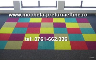 Impreuna putem realiza un covor din mocheta modulara, la preturi ieftine, de la euro 0,5 buc din paleta de zeci de culori si modele de pe stoc.