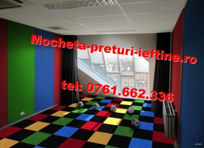 Vedeta amenajarilor in gradinite nu poate fi decat mocheta modulara dale care lasa loc imaginatiei si combinatiilor copilaresti de culori. Majoritatea copiilor se joaca pe mocheta, fac castele, deseneaza pomi si peisaje, doar mocheta modulara dale poate satisface aceste cerinte pentru ca se curata foarte usor, este fabricata din poliamida 100 % iar la atingere are acelasi efect ca si lana, fina si moale, delicata si linistitoare. Mocheta modulara dale pentru gradinite este fabricata pe un suport de bitum special, aderent perfect la orice pardoseala, este disponibila in mai multe texturi si grosimi, la alegerea clientului, se imbina perfect si poate fi scoasa foarte usor din pardoseala pentru a fi curatata sau inlocuita cu alta noua daca se doreste. Este antialergica si antistatica ceea ce impiedica depunerea de praf sau circulatia prafului sub forma de curenti de aer. Avem mii de metri patrati pe stoc la preturi ieftine, de la euro 0,50 buc.Telefon 0761.662336.
