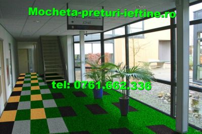 - Mocheta modulara dale este un produs fabricat in Olanda, bazat pe toate normele europene de fabricatie. Firma noastra comercializeaza acest produs intr-o multitudine de nuante si modele, pentru a va da posibilitatea de a crea covorul perfect, potrivit stilului si personalitatii dvs. Dalele de mocheta verde sunt unice si ideale in decorarea diverselor locatii, asortandu-se, bineinteles, la obiectele de mobilier existente. Montarea se realizeaza extrem de simplu, nu necesita meseriasi profesionisti, neaparat si nici adezivi de lipire. Covorul necesar in acoperirea pardoselii se realizeaza atasand modul langa modul, tinand seama de faptul ca 1 mp de pardoseala necesita 4 bucati, la dimensiunile standard de 50 cm x 50 cm. Utilizarea mochetei modulare verde este in orice interior, indiferent de destinatie, de la spatii comerciale la interioarele exclusiviste a vilelor de munte, sau a vilelor cu arhitectura moderna, mocheta modulara dale trebuie sa fie nelipsita. Calitatile sale sunt incomparabile fata de mocheta clasica care o stiti de pe vremuri. Avem mii de metri patrati pe stoc la preturi ieftine, de la euro 0,50 buc.Telefon 0761.662336. Livram in toata tara prin curierat rapid, inclusiv orasele: Abrud Adjud Agnita Aiud Alba Iulia Alesd Alexandria Amara Anina Aninoasa Arad Abrud Avrig Azuga Babadag Babeni Bacau Baia de Arama Baia de Aries Baia Mare Baia Sprie Baicoi Baile Govora Baile Herculane Olanesti Tusnad Bailesti Balan Balcesti Bals Baneasa Baraolt Barlad Bechet Beclean Beius Berbesti Beresti Bicaz Bistrita Blaj Bocsa Boldesti-Scaeni Bolintin-Vale Borsa Borsec Botosani Brad Bragadiru Braila Brasov Breaza Brezoi Brosteni Bucecea Bucuresti Budesti Buftea Buhusi Bumbesti-Jiu Busteni Buzau Buzias Cajvana Calafat Calan Calarasi Calimanesti Campeni Campia Turzii Campina Campulung Moldovenesc Campulung Caracal Caransebes Carei Cavnic Cazanesti Cehu Silvaniei Cernavoda Chisineu-Cris Chitila Ciacova Cisnadie Cluj-Napoca Codlea Comanesti Comarnic Constanta Copsa Mica Corabia Costesti Covasna Craiova Cristuru Secuiesc Cugir Curtea de Arges Curtici Dabuleni Darabani Darmanesti Dej Deta Deva Dolhasca Dorohoi Draganesti-Olt Dragasani Dragomiresti Drobeta-Turnu Severin Dumbraveni Eforie Fagaras Faget Falticeni Faurei Fetesti Fieni Fierbinti-Targ Filiasi Flamanzi Focsani Frasin Fundulea Gaesti Galati Gataia Geoagiu Gheorgheni Gherla Ghimbav Giurgiu Gura Humorului Harlau Harsova Hateg Horezu Huedin Hunedoara Husi Ianca Iasi Iernut Ineu Insuratei Intorsura Buzaului Isaccea Jibou Jimbolia Lehliu Gara Lipova Liteni Livada Ludus Lugoj Lupeni Macin Magurele Mangalia Marasesti Marghita Medgidia Medias Miercurea Ciuc Miercurea Nirajului Miercurea Sibiului Mihailesti Milisauti Mioveni Mizil Moinesti Moldova Noua Moreni Motru Murfatlar Murgeni Nadlac Nasaud Navodari Negresti Negresti-Oas Negru Voda Nehoiu Novaci Nucet Ocna Mures Ocna Sibiului Ocnele Mari Odobesti Odorheiu Secuiesc Oltenita Onesti Oradea Orastie Oravita Orsova Otelu Rosu Otopeni Ovidiu Panciu Pancota Pantelimon Pascani Patarlagele Pecica Petrila Petrosani Piatra Neamt Piatra-Olt Pitesti Ploiesti Plopeni Podu Iloaiei Pogoanele Popesti-Leordeni Potcoava Predeal Pucioasa Racari Radauti Ramnicu Sarat Ramnicu Valcea Rasnov Recas Reghin Resita Roman Rosiorii de Vede Rovinari Roznov Rupea Sacele Sacueni Salcea Saliste Salistea de Sus Salonta Sangeorgiu de Padure Sangeorz-Bai Sannicolau Mare Santana Sarmasu Satu Mare Saveni Scornicesti Sebes Sebis Segarcea Seini Sfantu Gheorghe Sibiu Sighetu Marmatiei Sighisoara Simeria Simleu Silvaniei Sinaia Siret Slanic Slanic-Moldova Slatina Slobozia Solca Somcuta Mare Sovata Stefanesti, Arges Stefanesti, Botosani Stei Strehaia Suceava Sulina Talmaciu Tandarei Targoviste Targu Bujor Targu Carbunesti Targu Frumos Targu Jiu Targu Lapus Targu Mures Targu Neamt Targu Ocna Targu Secuiesc Tarnaveni Tasnad Tautii-Magheraus Techirghiol Tecuci Teius Ticleni Timisoara Tismana Titu Toplita Topoloveni Tulcea Turceni Turda Turnu Magurele Targoviste Ulmeni Ungheni Uricani Urlati Urziceni Valea lui Mihai Valenii de Munte Vanju Mare Vascau Vaslui Vatra Dornei Vicovu de Sus Victoria Videle Viseu de Sus Vlahita Voluntari Vulcan Zalau Zarnesti Zimnicea Zlatna