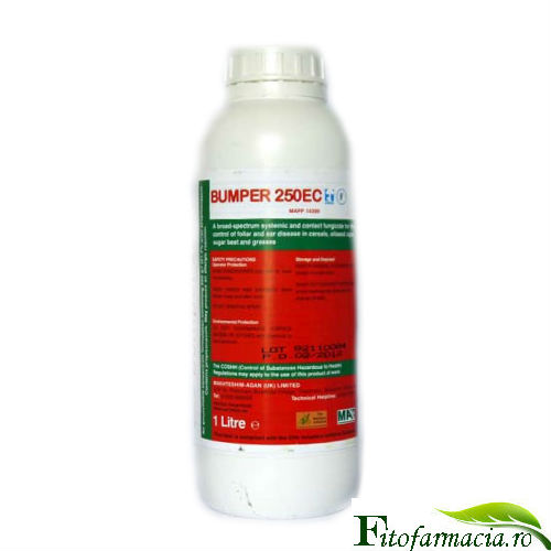 Fungicidul Bumper250 EC este unul sistemic ,cu actiune preventiva si curativa si ofera o buna protectie intregii plante. Comenzi la numarul de telefon :0758101503 sau http://www.fitofarmacia.ro/produs/bumper-250ec-1-l/331