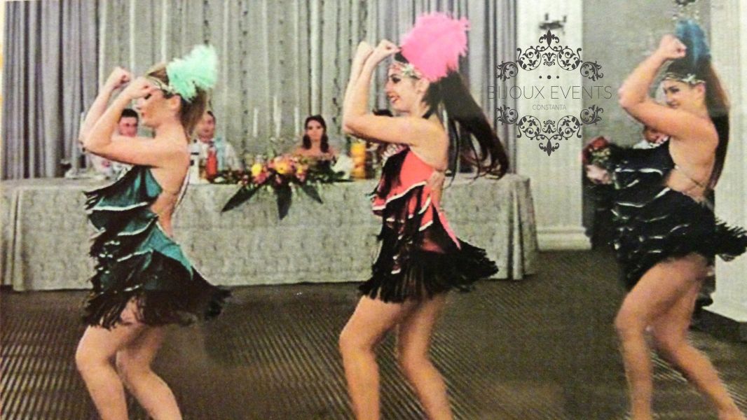 - Va doriti sa va surprindeti invitatii cu un moment artistic de exceptie, dar nu aveti nicio idee? Bijoux Events Constanta va ofera o o gama variata de momente artistice din care dumneavoastra sa alegeti ceea ce va place! Va punem la dispozitie: dansuri populare Constanta, dansuri orientale Constanta, dansuri moderne Constanta, dansuri tiganesti Constanta, dansuri grecesti Constanta , dansuri latino Constanta. Dansatorii nostri profesionisti vor sti sa energizeze atmosfera petrecerii si sa faca in asa fel incat toti invitatii sa vina pe ringul de dans. Cu siguranta toata lumea se va simti extraordinar! Venim la evenimente precum: nunti, botezuri, petreceri aniversare, evenimente corporate, banchete, majorate, oriunde in judetul Constanta si Tulcea. Pentru mai multe detalii si oferta completa, nu ezitati sa ne sunati la numarul de telefon: 0762838354