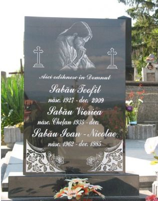 Comecializam o gama diversificata de produse funerare - monumente si rame (cadre) funerare din granit inscriptionate prin sablare cu nisip si gravate manual cu diferite icoane si ornamente.