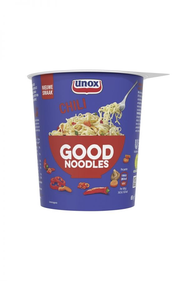 Import Olanda Noodles chili picanti de la Unox au un gust inconfundabil si devine o gustare delicioasa sau o masa calda atat la birou cat si acasa.
