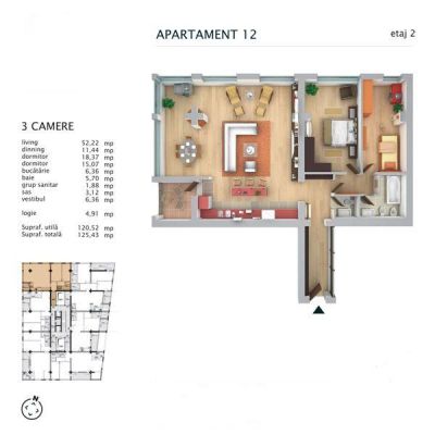 Cauti un apartament care sa iti ofere atat confort, cat si accesibilitate Te invitam sa descoperi acest apartament de 3 camere...