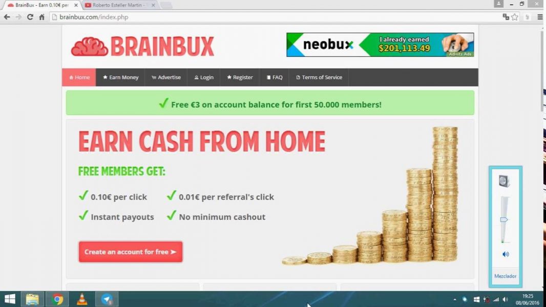 - Va prezint site-ul BRAINBUX care plateste cate 0,10 euro/click (aproximativ 5-6 pagini) si 0,05 euro/click (aproximativ 45 pagini), si plateste dupa 100 click-uri (pagini vizualizate). Se pot face in maxim 2 zile! Daca faceti si referali, puteti avea cate 100 click-uri pe zi, singura conditie la plata este ca trebuie sa aveti 10 referali. Am strans pana acum (in 2 saptamani) - 45 euro, dar am facut doar cate 10-15 click-uri pe zi. Intrati pe link-ul: http://brainbux.com?ref=daniela89