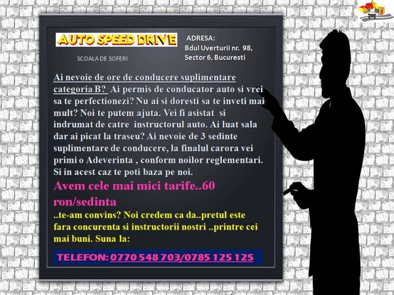 Spune-ne parerea ta despre anuntul "Ore suplimentare de conducere auto!".