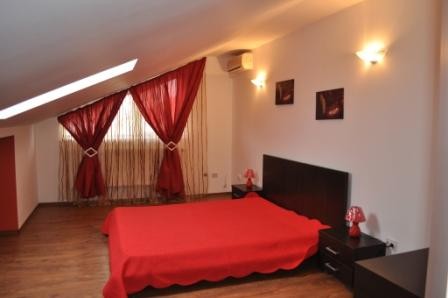 Parterul are un living foarte spatios, baie, bucatarie, spatiu de servit masa si terasa. La etaj dispune de 2 dormitoare cu balcon, baie cu Jacuzzi si living. Mansarda este alcatuita din un dormitor spatios si baie. Vila este complet dotata si utilata ultramodern: AC, LCD, semineu, usi din sticla, plita, cuptor, combina frigorifica, masina de spalat etc. Curtea are gazon, terasa din piatra cu bar si chiuveta in exterior si barbeque. -