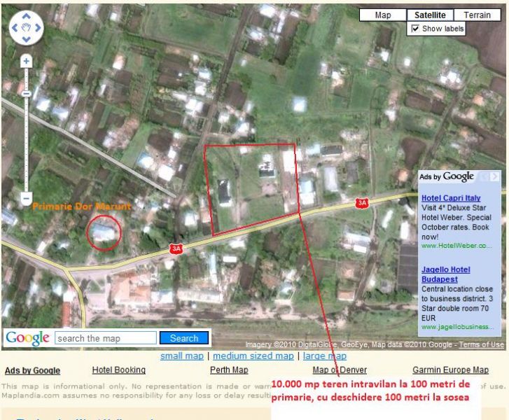 - Soseaua Bucuresti- Constanta, localitatea Dor Marunt, judet Calarasi. la 20metri langa Primaria Dor Marunt, deschidere 100m la soseaua DN3, la 100metri de Gara Dor Marunt, 7 Km pana la autostrada Soarelui(Bucuresti - Constanta), 63 Km pana la Bucuresti. Avantaje majore: mana de lucru foarte ieftina in zona, transfer facil auto si de containere din si inspre Constanta sau Bucuresti, deschidere la drumul national DN3. Bloc parter + 1 etaj: 25 camere, 4 bai, suprafata totala 702 mp, Depozit 1: 377 mp, Depozit 2: 276 mp, Teren : 10.0000 mp, intravilan, curte imprejmuita cu gard de caramida si beton de 2,5 m inaltime. Toate utilitatile : apa, curent electric, canalizare sunt la teren