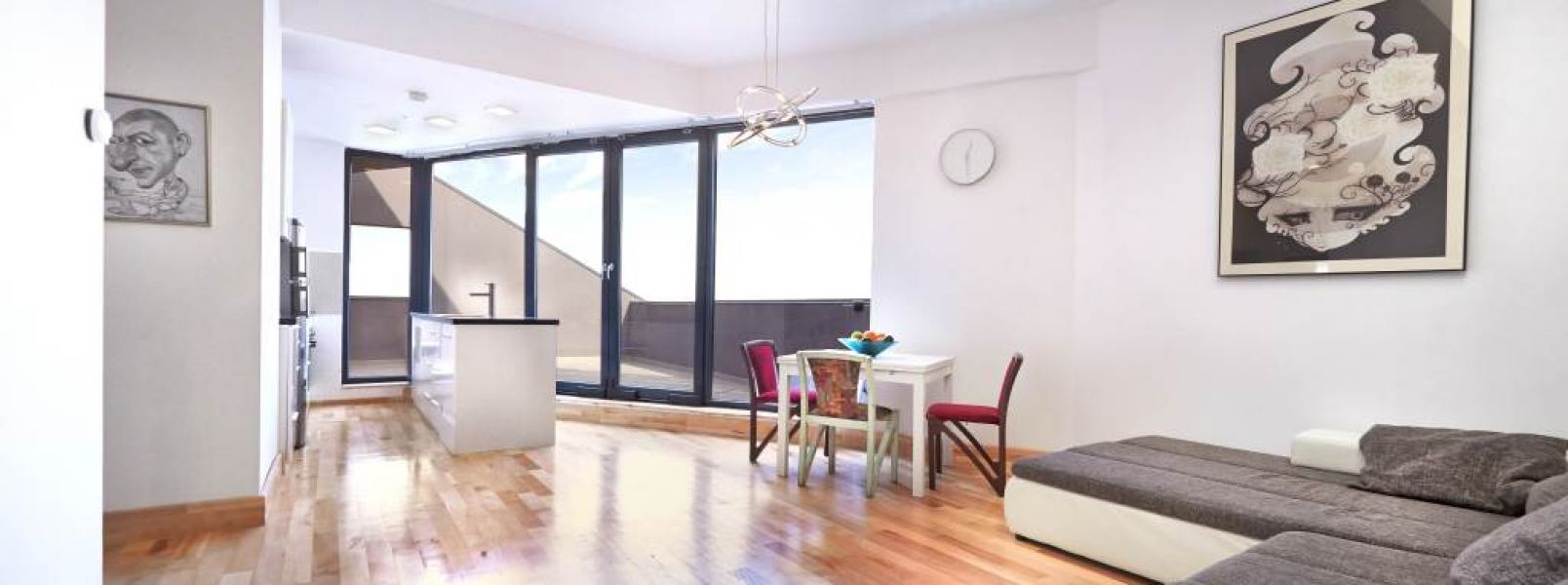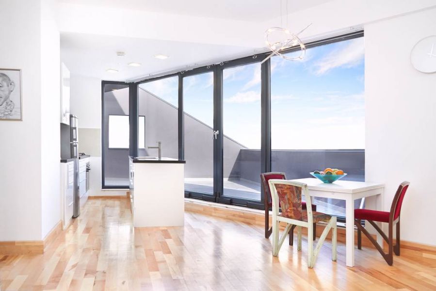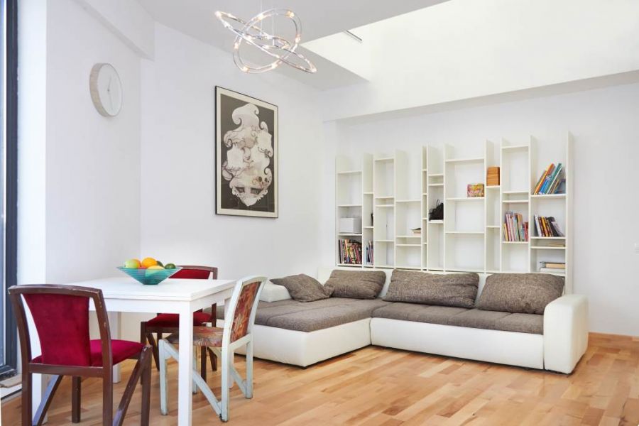 - Penthouse 2 camere, living si dormitor. Fiecare camera are terasa proprie. Dotari speciale: incalzire in pardoseala pe toata suprafata apartamentului (inclusiv baie), parchet din lemn masiv, gresie si faianta portelanata Italia, perete cortina de sticla din living catre terasa, inaltimea camerelor 3 m. Semineu montat la cerere. Pret: 115.000 Euro. Email: dorina.lucu@casaurbana.ro