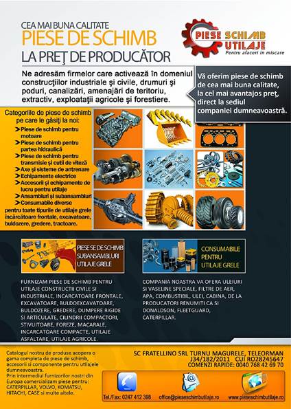 Spune-ne parerea ta despre anuntul "Piese de schimb utilaje grele, masini si utilaje agricole, motoare si echipamente navale".