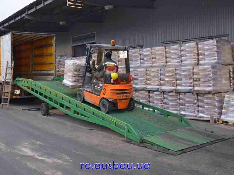 Īncărcătorul ridică marginea rampei (există un loc special pentru prinderea cuplajului rigid) și īl aduce la camion. Cu ajutorul pompei hidraulice, o persoană, apăsānd mānerul pompei hidraulice, stabilește īnălțimea rampei la nivelul cerut (de la 900 mm pīnă la 1650 mm). Īn comple -