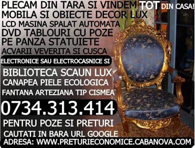 - Scaun regal auriu biblioteca tablouri cu poze pe panza lustra statuiete alte obiecte decor lux fantana arteziana masina spalat automata tv Lcd oglinda gong teatru canapea vitrina masuta etc 0734313414
