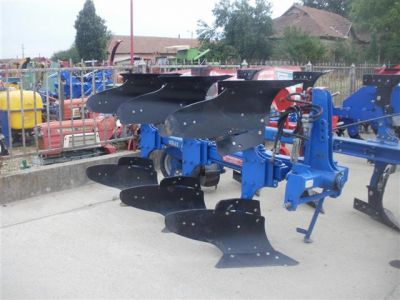 - Utilaje agricole Santion - Plug cu 3 trupite reversibil hidraulic - Latimea de lucru 0.96-1.2m, Viteza de lucru 6-8 km/h, Productivitate 0.5 ha/h, Masa 640 kg.