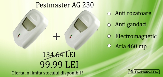 - Acest aparat universal PestmasterAG 230 emite unde electromagnetice,imediat ce este introdus in priza , unde ce ataca sistemul nervos al daunatorilorsi ii determina sa paraseasca zona.Puteti comanda la numarul de telefon:0758101503 sau http://www.roinsect.ro/