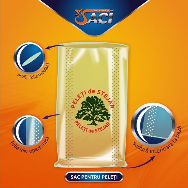 Dimensiune standard 460 x 700 x 0.07 = pentru ambalare 15 kg peleti.