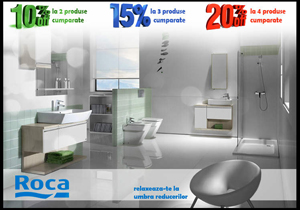 - Promotie Specaila http://www.tucor-design.ro/obiecte-sanitare-roca-c90-p0.html cumpara sau comanda seturi ROCA si beneficiezi de reducere: 10% 2 produse, 15% x 3 produse , 20% x 4 produse ROCA obiecte sanitare la alegere.