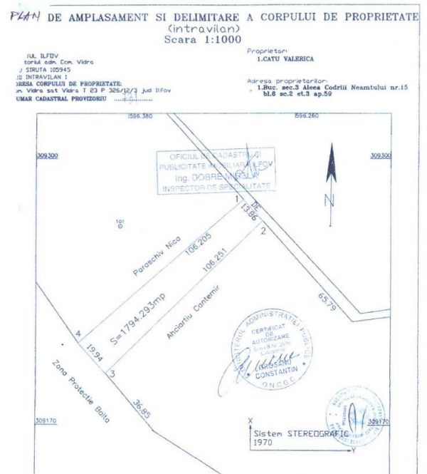 - Proprietar direct vand teren intravilan, 1794 mp, situat pe malul lacului Mamina din loc. Vidra, com. 1 Decembrie, jud. Ilfov, la 25 de minute de centrul Bucurestiului prin Berceni. Terenul are deschidere la lac de 20 ml si de 14 ml la drumul de acces; are cadastru si intabulare; este lipsit de sarcini si este pretabil pentru casa de vacanta sau cabana de pescuit, locuinta, pensiune. Pretul este de 18 euro/mp si este putin discutabil ! Asiguram contra cost intocmirea proiectului tehnic si a proiectului de finantare pentru accesarea fondurilor UE nerambursabile in vederea realizarii unei pensiuni sau case de vacanta. Email: valeriu.citu@yahoo.com