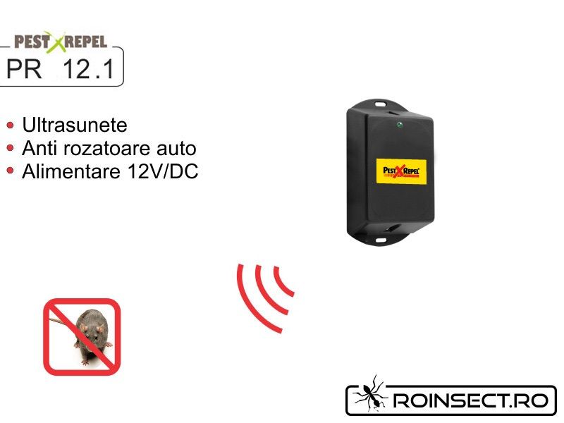 - PestXRepel PR12.1 este un dispozitiv cu ultrasunete impotriva rozatoarelor. Este un dispozitiv ce are ca scop alungarea rozatoarelor din capota autoturismului.Puteti comanda la nr de telefon: 0758101503 sau Protectie auto- http://www.roinsect.ro/pesticide/protectie-auto/18
