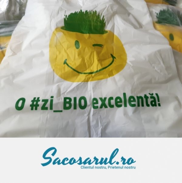 Pungile BIO albe sau cu tenta fina verzuie, imprimate O #zi_BIO excelenta iti binedispun clientii.