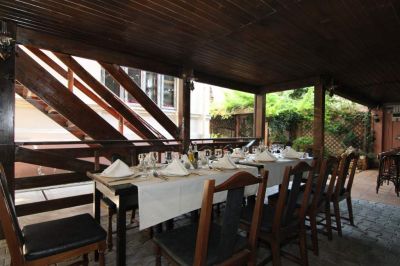 Etajul a fost in totalitate recompartimentat si impartit in mai multe camere cu pereti din gips carton, usor de demolat in cazul care un viitor proprietar ar dori restaurarea casei si revenirea la forma originala. Aici gasim camerele proprietarilor, doua bucatarii, 2 centrale termice, 2 bai si o scara noua cu intrare separata.la parter functioneaza din2004 un restaurant cu capacitate de:100pers int si 130 pers terasa.restaurantul se vinde complet utilat si mobilat.pret vinzare730000euro,pret inchiriere 4000 euro. PROPRIETAR. 0766481317