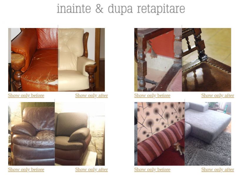 • Oferim servicii de retapitari si reparatii canapele din stofa sau piele Bucuresti si Ilfov, reconditionari si retapitari fotolii si scaune, servicii de reconditionari si tapiterie pentru orice tip de mobilier in Bucuresti, Ilfov si zonele limitrofe.
