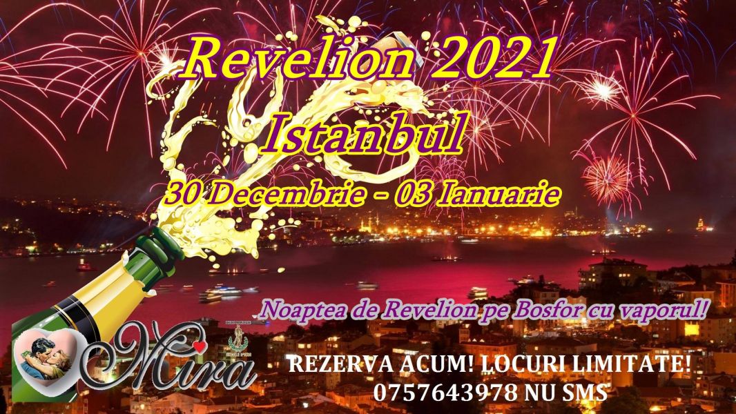 - Revelion 2021 – dupa un an 2020 “carantinat” incepe un 2021 pe apele Bosforului – am organizat in acest an cateva zile la Istanbul pentru a te surprinde si de data aceasta cu o noapte de Revelion de neuitat – Noaptea de Revelion pe vapor plimbandu-ne pe Bosfor. ACUM pana in 25 Octombrie pret oferta – 470€ - 30 Decembrie – 03 Ianuarie -plecare din Cluj Napoca si Bucuresti - transport avion, cazare cu mic dejun hotel in centrul Istanbului – Noaptea de Revelion pe vapor – transferuri. 0757643978 Nu sms