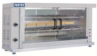 Rotisor gaz cu 2 tepuse, capacitate 8 - 12 pui, constructie inox, iluminare, geam termorezistent, arzatoare ceramice si componente detasabile pentru o curatare usoara, control separat pentru fiecare tepusa, sertar apa pentru colectarea grasimii, putere 6 Kw, dimensiuni 1320x460x680mm. COD: 345199.