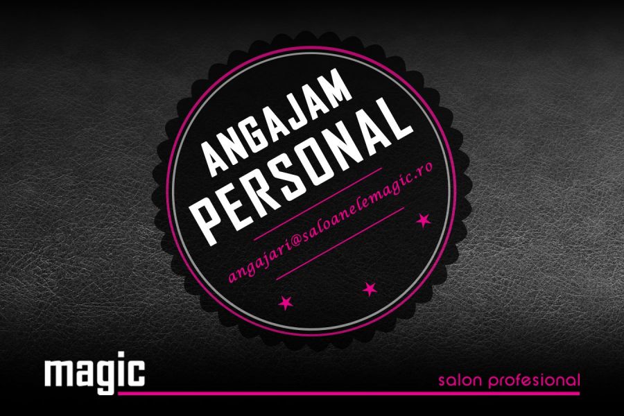 Saloanele Magic Militari angajeaza personal: cosmeticiene, coafeze / hairstilisti si manichiuriste / tehnicieni unghii false! Daca vrei sa faci parte dintr-o echipa extraordinara, sa te specializezi incontinuu, sa lucrezi intr-un mediu modern si bine echipat, sa te bucuri de un pachet de beneficii unic in Romania in domeniul de beauty, atunci trimite datele tale sau CV-ul pe angajari@saloanelemagic.ro sau apelati 0786.138.262!
