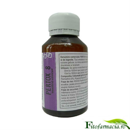 - Pertox8 este un insecticid de contact dar si de indigestie cu remenenta mare, ce are la baza substanta activa a solutiei Permethrin.Puteti comanda la numarul de telefon:0758101503 sau http://www.fitofarmacia.ro/produse/substante-anti-insecte/10