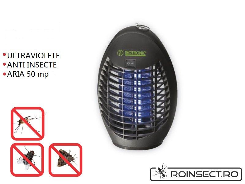 - Aparatul anti insecte cu lampa uv de la Isotronic Insect Killer este folosit in prevenirea si combaterea insectelor zburatoare si acopera o suprafata de50mp. Puteti comanda la numarul de telefon: 0758101503 sau http://www.roinsect.ro/categorie/aparate-anti-tantari/4