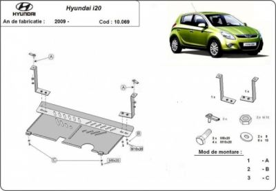 Scut metalic auto Hyundai i20. Scut motor metalic ideal ptr. drumuri dificile. Scut motor ce vine insotit de kit-ul de montaj. Protejeaza motorul si cutia de viteze. Scut motor din tabla otel vopsita in camp electrostatic, prevazut cu intarituri aerisiri si vizita. Pentru montarea scutului motor metalic nu sunt necesare modificari ale autoturismului. Acest scut motor se monteaza pe toate motorizarile. Acest scut motor este nou. Pentru detalii contactati-ne.