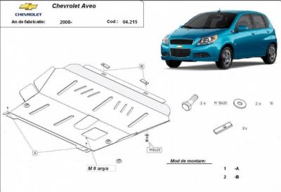 Scut metalic Chevrolet Aveo produs dupa 2008. Scut motor metalic ideal ptr. drumuri dificile. Scut motor ce vine insotit de kit complet de montaj. Scutul motor metalic protejeaza motorul si cutia de viteze. Scut motor din tabla de otel vopsita in camp electrostatic, prevazut cu intarituri, aerisiri si vizita.Pentru montarea scutului motor metalic nu sunt necesare modificari ale autoturismului. Acest scut motor metalic se potriveste pe toate motorizarile de Chevrolet Aveo fabricat dupa 2008. Acest scut motor este nou. Pentru mai multe detalii contactati-ne telefonic.