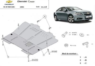 Scut motor metalic ptr. Chevrolet Cruze (atat pentru sedan cat si pentru hatchback). Acest scut motor protejeaza si cutia de viteze. Pentru aerisire acest scut motor este prevazut cu fante de ventilatie. Pentru o mai mare rezistenta scutul motor este prevazut cu intarituri. Acest scut motor se potriveste pe toate motorizarile. Pentru mai multe modele de scut motor accesati site-ul nostru.