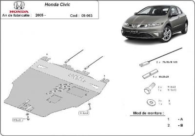Scut motor metalic Honda Civic fabr. dupa 2005. Scut motor metalic ce protejeaza motorul masinii si cutia de viteze. Scutul motor metalic este nou si se potriveste pentru toate tipurile de motorizari de Honda Civic fabricate dupa 2005. Scutul motor se livreaza impreuna cu kit-ul de montaj iar montarea lui nu afecteaza garantia. Fabricat din tabla de otel. Pentru rezistenta acest scut motor este prevazut cu intarituri longitudinale si este vopsit electrostatic. Montarea acestui scut motor nu implica modificari aduse masinii dvs. Pentru detalii contactati-ne.