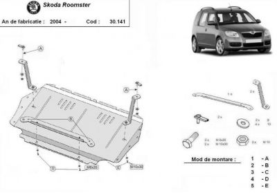 Scut motor metalic Skoda Roomster. Scut motor fabricat din tabla de otel vopsita in camp electrostatic cu intarituri aerisiri si vizita pentru schimbul de ulei. Acest scut motor vine insotit de elementele de montaj. Acest scut motor se monteaza pe toate modelele de Skoda Roomster. Montajul acestui scut motor se poate face la orice service. Acest scut motor este nou. Pentru mai multe detalii contactati-ne telefonic.
