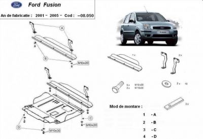 Scut motor metalic Ford Fusion produs intre 2001 - 2005. Acest scut motor metalic este nou si se potriveste perfect pentru toate tipurile de motorizari de Ford Fusion 2001-2005. Scutul motor metalic protejeaza si cutia de viteze. Acest scut motor metalic se potriveste pe toate motorizarile (benzina si diesel). Scutul motor se livreaza impreuna cu kit-ul de montaj iar montarea lui nu afecteaza garantia. Scut motor fabricat din tabla de otel. Pentru rezistenta acest scut motor este prevazut cu intarituri longitudinale si este vopsit electrostatic. Montarea acestui scut motor nu implica modificari aduse masinii dvs. Pentru detalii contactati-ne.