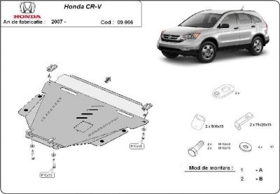 Scut motor metalic Honda CR-V fabr. dupa 2007. Acest scut motor metalic este nou si se potriveste pe toate tipurile de motorizari de Honda CR-V fabricat dupa 2007. Scutul motor metalic protejeaza si cutia de viteze. Scutul motor se livreaza impreuna cu kit-ul de montaj iar montarea nu afecteaza garantia. Fabricat din tabla otel. Pentru rezistenta acest scut motor este prevazut cu intarituri longitudinale si este vopsit electrostatic. Montarea acestui scut motor nu implica modificari aduse masinii dvs. Pentru detalii contactati-ne.
