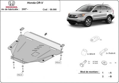 Scut motor metalic Honda CR-V fabr. dupa anul 2007. Acest scut motor metalic este nou si se potriveste perfect pentru toate tipurile de motorizari de Honda CR-V fabricat dupa 2007. Scutul motor metalic protejeaza si cutia de viteze. Acest scut motor se potriveste pe toate motorizarile (benzina si diesel). Scutul motor se livreaza impreuna cu kit-ul de montaj iar montarea lui nu afecteaza garantia. Scut motor fabricat din tabla de otel. Pentru rezistenta acest scut motor este prevazut cu intarituri longitudinale si este vopsit electrostatic. Montarea acestui scut motor nu implica modificari aduse masinii dvs. Pentru detalii contactati-ne.